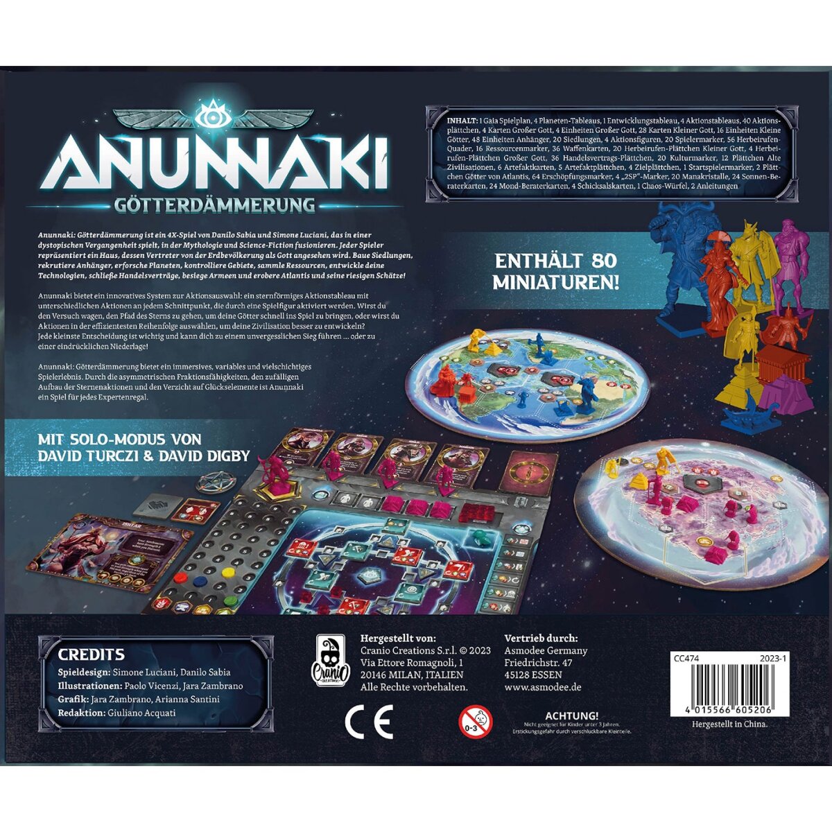 Im 4X-Eurogame Anunnaki: Götterdämmerung repräsentiert ihr in einer dystopischen Vergangenheit die Häuser von Gottheiten und versucht, die Vorherrschaft auf den Planeten an euch zu reißen. Baut Siedlungen, rekrutiert Anhänger, entwickelt Technologien und erobert gegnerische Gebiete oder sogar das sagenumwobene Atlantis mit seinen riesigen Schätzen!
