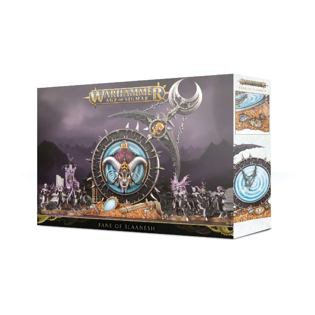 Dieser mehrteilige Kunststoffbausatz enthält alle notwendigen Komponenten zum Bau eines Fanes of Slaanesh.