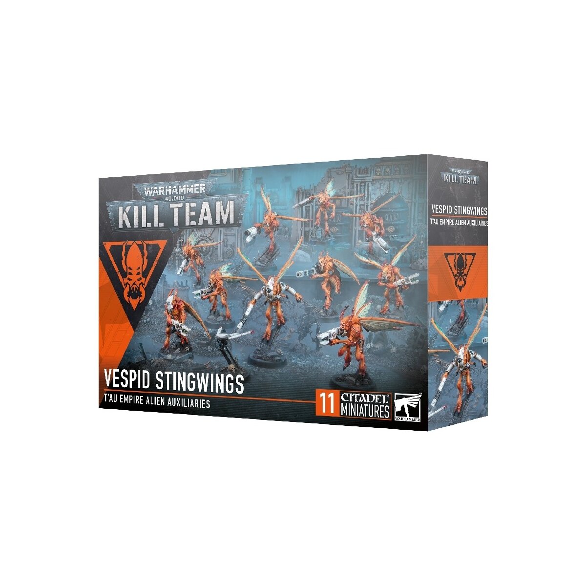 Dieser mehrteilige Kunststoff-Bausatz enthält alle notwendigen Komponenten zum Bau von 10 Vespid-Stachelflügel, die von einer Aufsichtsdrohne begleitet werden.