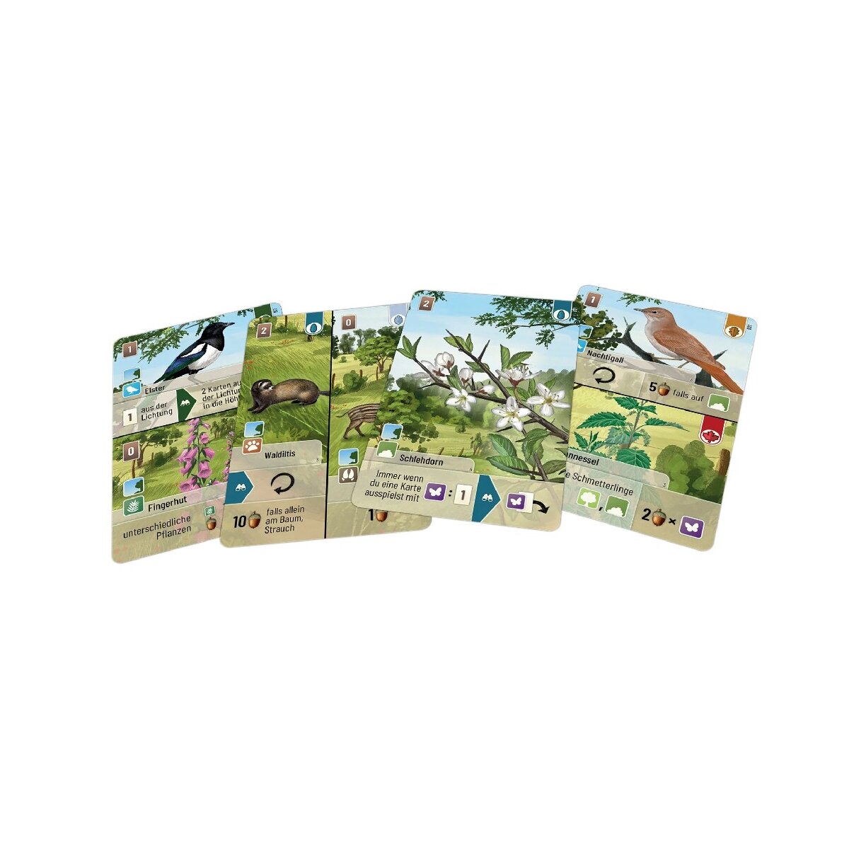 - 36 neue, wunderschön illustrierte Karten, darunter die neue Kartenart Sträucher