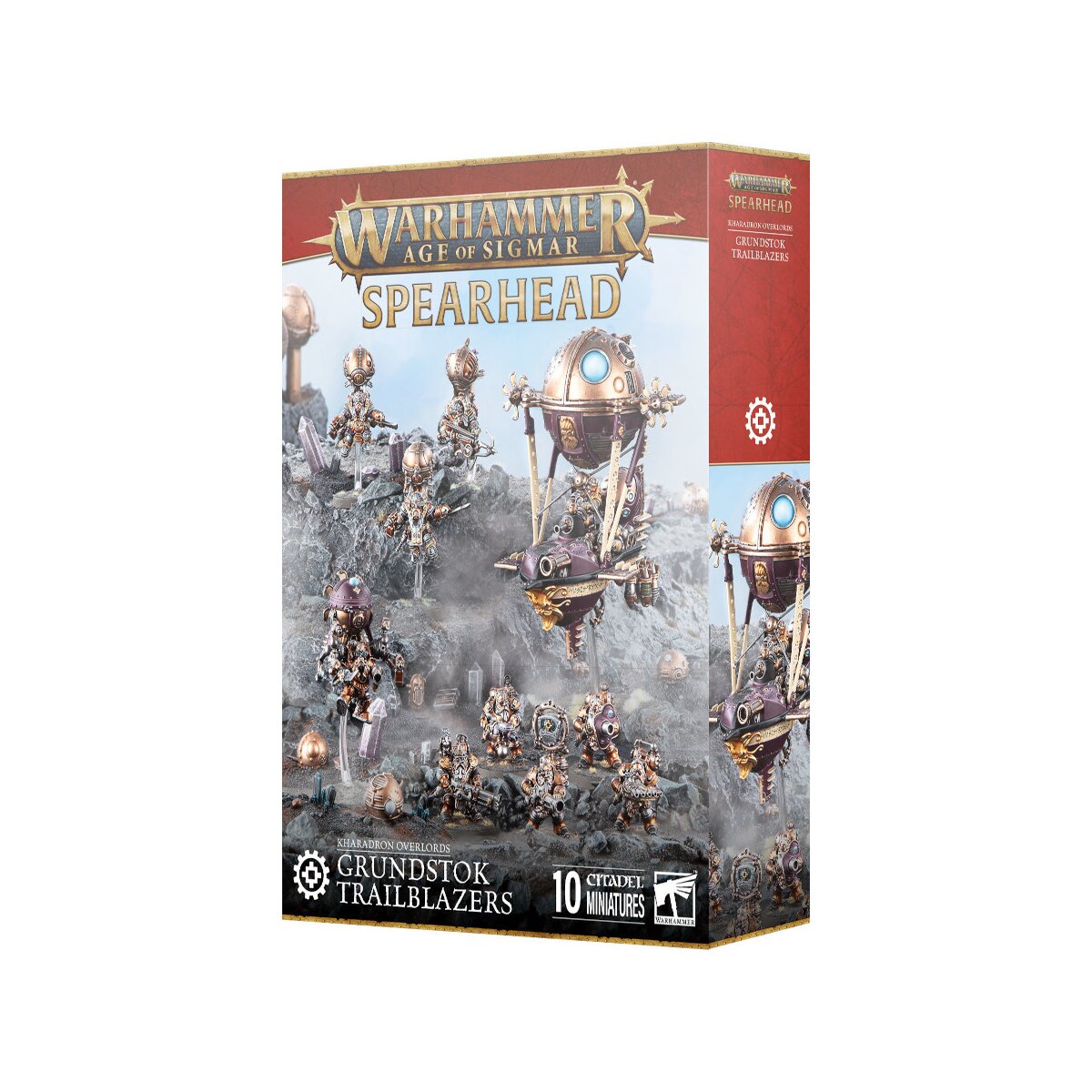 Dieser mehrteilige Kunststoff-Bausatz enthält alle notwendigen Komponenten zum Bau einer Auswahl an Schlüsseleinheiten der Himmelsherrscher der Kharadron, die eine vollständige Speerspitze bilden.